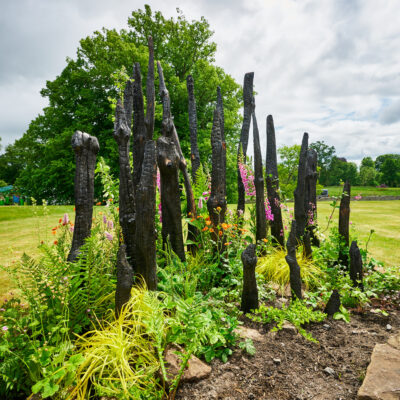 Although on first impression the garden may seem shocking with the charred trees, I wanted there to be a stark juxtaposition of the destructive effects of climate change with the beauty of nature.